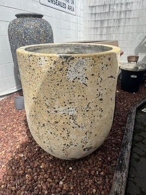 Each planter is handcrafted, resulting in unique variations of stone grey, mossed green, salt-washed beige, and deep charcoal, with textured surfaces that mimic the look of aged coastal artifacts. No two vessels are identical, each reveals its own organic markings and artisanal imperfections, giving the collection its captivating authenticity.
